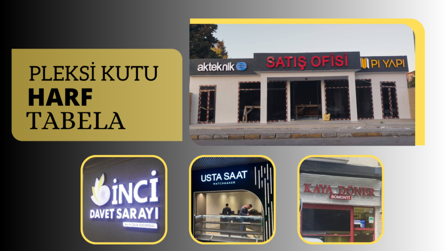 Pleksi Kutu Harf Tabela, Paslanmaz Harf Tabela, Fileli Harf Tabela, Vinil Germe Tabela, Oyma Tabela, Fener Tabela, Neon Tabela, Karpleks Harf Tabela, Totem Tabela ve Çatı Tabelası gibi geniş ürün yelpazemizle her ölçekten işletmeye özel çözümler sunuyoruz.